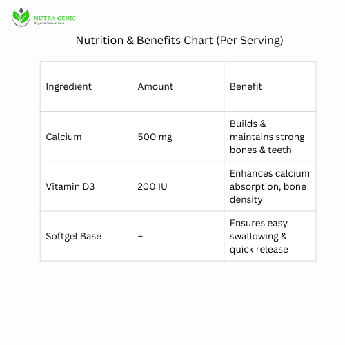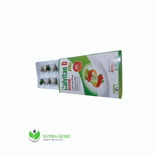 Nutra Genic Organic Natural Care – Calvitan D is a premium dietary supplement formulated with Calcium and Vitamin D3 to support strong bones, healthy teeth, and overall vitality. Specially designed for men and women of all ages, Calvitan D helps maintain bone density, improve calcium absorption, and promote long-term skeletal health.