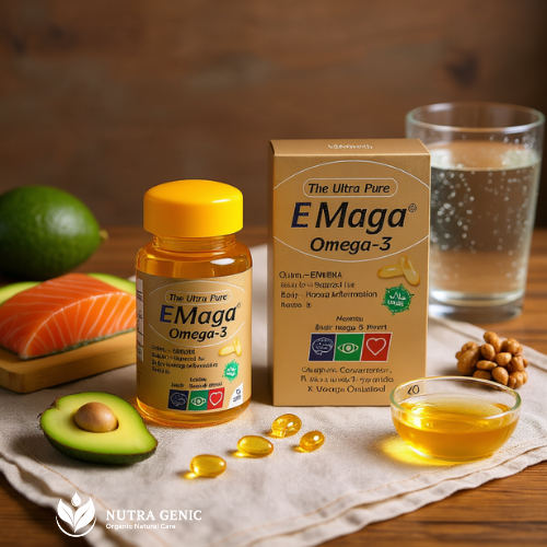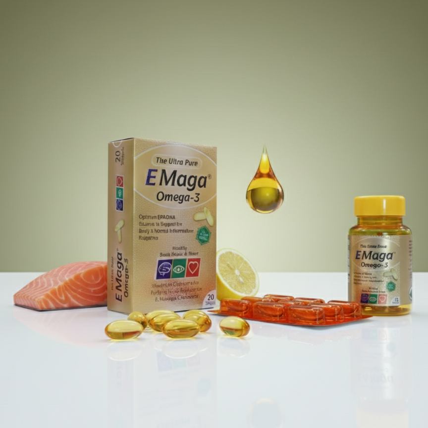 EMAGA is a premium Omega-3 dietary supplement designed to support heart, brain, and joint health. Each softgel provides a concentrated dose of essential fatty acids (EPA & DHA) derived from high-quality fish oil. These healthy fats are known for their role in maintaining cardiovascular function, improving cognitive performance, reducing inflammation, and promoting overall vitality.